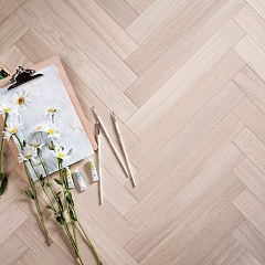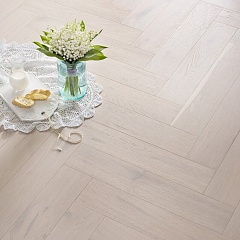 Coswick Английская ёлка 3-х слойная T&G шип-паз (90°) 1174-1842-10 Акварельный белый (Порода: Дуб)